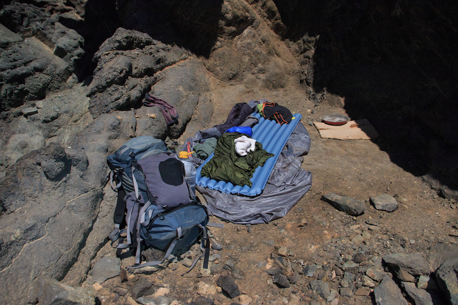 The open lava tunnel next to the cliffs had been a resting place for many visitors. Today it was empty and I made it my home. It felt something like a secret shelter from Game of Thrones with the throne to sit on. The ocean thundered against the cliffs and each big wave resonated through the solid slabs and old lava formations. Sitting in the deepest room you could feel the exploding waves vibrate straight through the rocks and your body. The place had so many faces and angles. It was another loud and windy night but I was getting used to it. The hike started during full moon so when I woke up to pee it was light again.